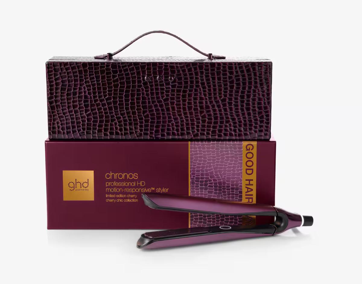 Entrez dans l'univers ultra glamour de la collection ghd cherry chic, où se mêlent design tendance et performance exceptionnelle. Orné d'une teinte élégante bordeaux profond, le lisseur professionnel ghd Chronos HD motion-responsive incarne l'essence même du luxe. Il est accompagné d'un vanity¹ pour transformer chaque session de coiffage en un moment de plaisir.
