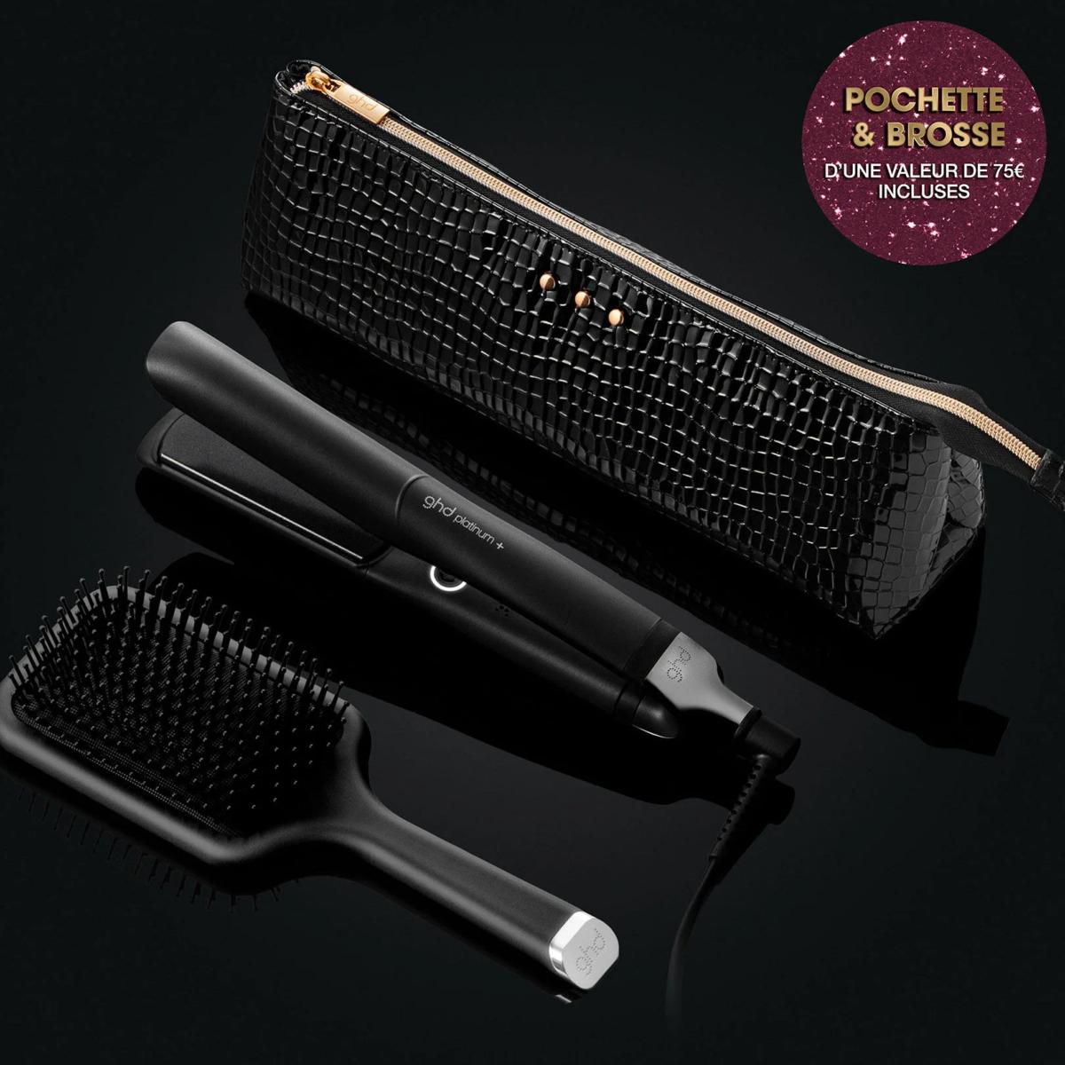 Pour des fêtes de fin d'année ultra-glamours, laissez-vous séduire par le coffret cadeau ghd Platinum+. Ce coffret se compose du lisseur professionnel intelligent ghd Platinum+, associé à la brosse plate ghd et à une pochette thermorésistante : le trio ultime pour des cheveux sublimes sans effort.